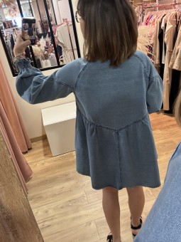 Robe en jean manches longues Coupe trapèze très large Boutons...