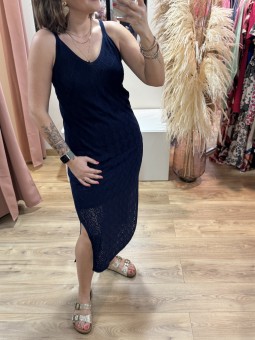 Robe en maille ajourée Fines bretelles Doublée jusqu'au genou...