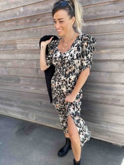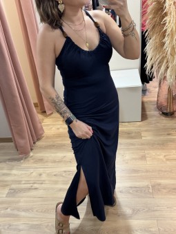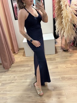 Robe longue à fines bretelles Fendue sur les cotés Décor...