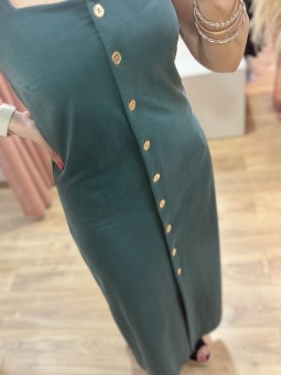Robe longue à bretelles Entièrement boutonnée Fendue sur les...