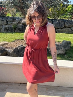 Robe courte avec décolleté à volants en v. Ceinture tressée à...
