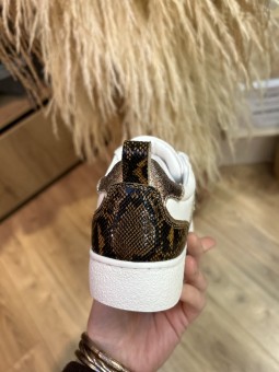Basket Vanessa Wu blanche et camel Imprimé esprit python A lacets