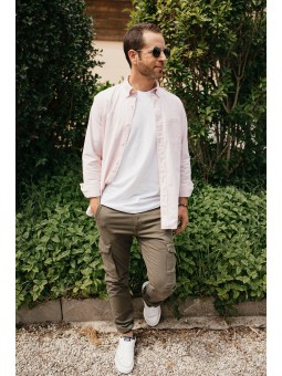 Pantalon chino en lin Taille semi élastiquée et avant boutonné...