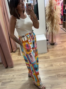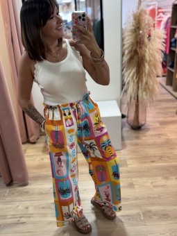 Pantalon coupe chino. Toile avec impression. Poches plates. 2...