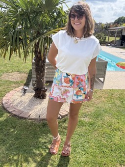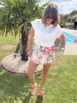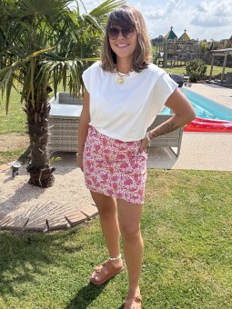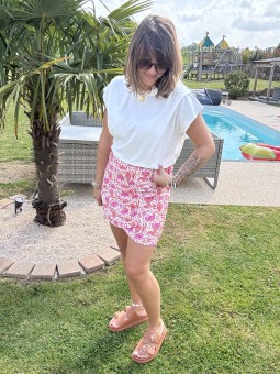 Jupe courte imprimé fleuri tons rose et orange taille...