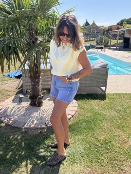 Jupe short en velours Bas à volants Ceinture fournie TU