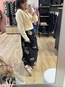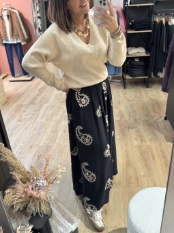 Jupe longue avec des broderies Motif cachemire brodé en beige...