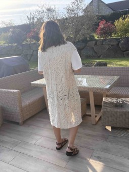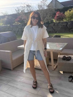 Pull en crochet coupe large Manches 3/4 larges Col rond élargi