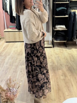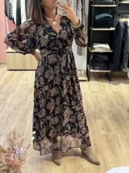 Robe longue en voile Motif floral Couleur camel, noir et...