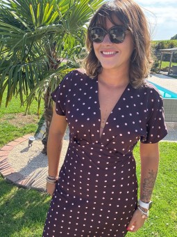 Robe longue haut cache coeur En voile imprimé tacheté  Bouton...