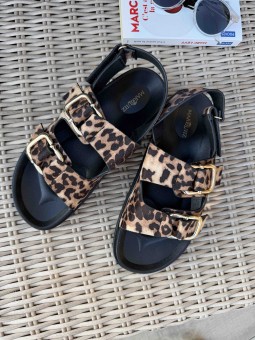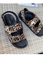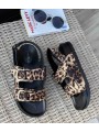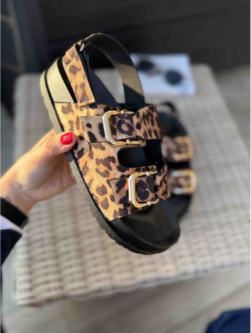 Sandales en textile leopard à double brides