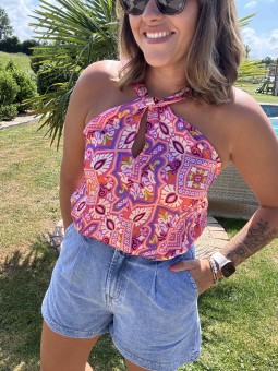 Short en lin a motifs coeur soleil flamme ... Complétez le...